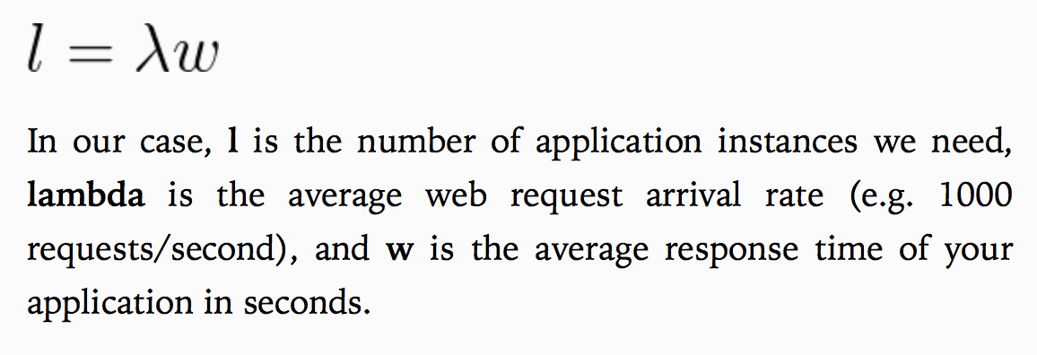 The amount of servers that you currently have divided by the amount of servers estimated by Little’s Law should be between 10% and 25%.